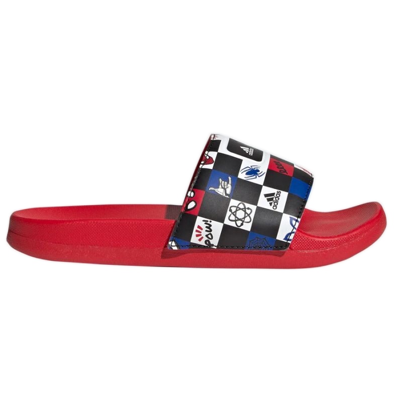 Adidas Adilette Comfort Spiderman K (HP7758) Flip -Fops -červené, lehké a pohodlné překlopení pro chlapce, ideální pro léto, pláž a bazén. Model kombinuje charakteristický vzhled Adilelette s motivem Spiderman a poskytuje dětem pohodlí a styl při hraní.