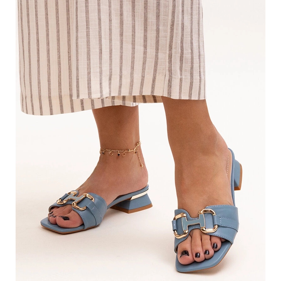 Podrobnosti: Žabky na nízkém podpatku s ozdobnou Luara sponou modrý