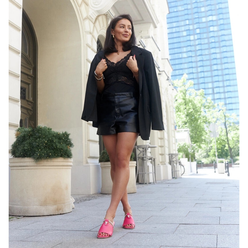 Objevte jedinečné žabky s koženou stélí Antari v krásném růžovém odstínu Fuchsie, který se dokonale shoduje s vašimi letními stylizacemi. Tyto klasické a moderní flip -flops byly obohaceny o elegantní kamínky, které jim dávají luxusní charakter a každá okamžik v nich utratí jedinečný.