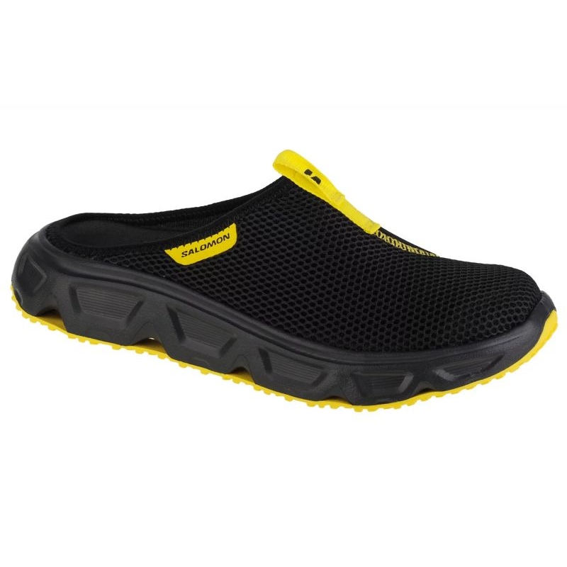 Žabky Salomon Reelax Slide 6.0 jsou k dispozici v elegantní černé barvě se žlutými akcenty, což ještě více zdůrazňuje jejich moderní design. Bez úspěchu se mohou stát neodmyslitelným prvkem každého letního stylingu nebo každodenního šatníku.