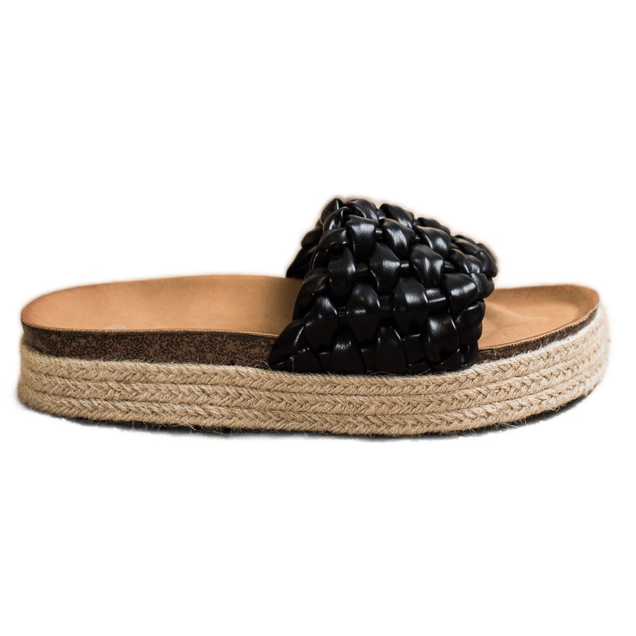 SHELOVET SHELOVET Žabky z pletených espadrilek černá