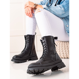 Černé pracovní boty jsou navíc ozvláštněny ozdobným zipem, který jim dodává moderní vzhled. Systém zipu a šněrování umožňuje dokonalé přizpůsobení noze, což je klíčové pro pohodlí nošení.