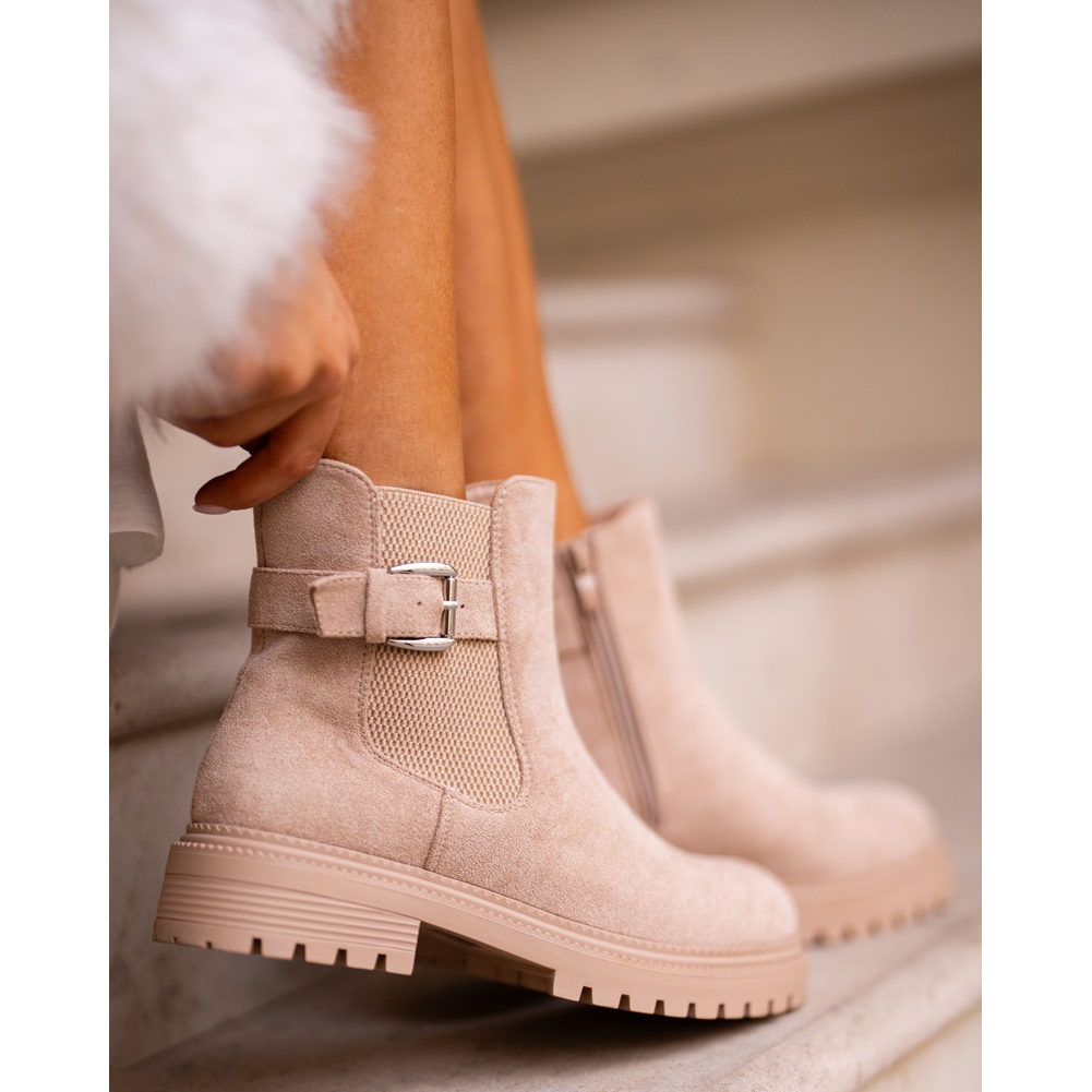 Podrobnosti: Zateplené Chelsea boty se zipem a přezkou, Béžová Kikiella béžový