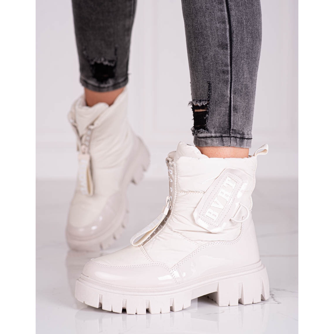 Vyrobeny z vysoce kvalitních textilních materiálů zvenku i zevnitř, poskytují tito pracovníci maximální pohodlí při nošení a zateplení zajistí, že vaše nohy budou vždy v teple i v těch nejchladnějších dnech. Vestavěný měkký podpatek a kulatá špička zajistí pohodlí a praktický zip usnadňuje obouvání a vyzouvání.