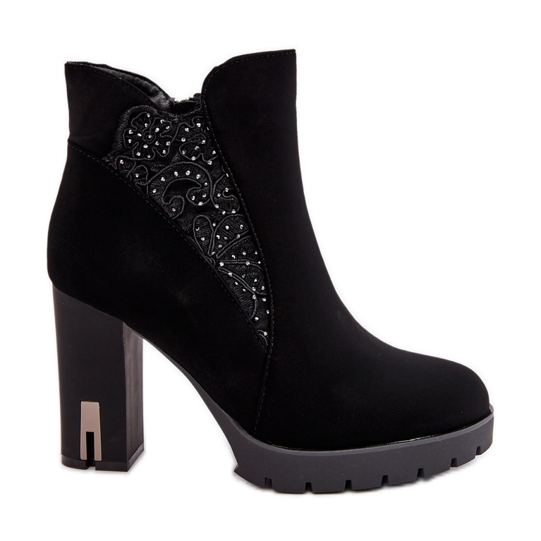 Podrobnosti: PS1 Zateplené dámské kotníkové boty na vysokém podpatku s výšivkou, Black Verissae černá