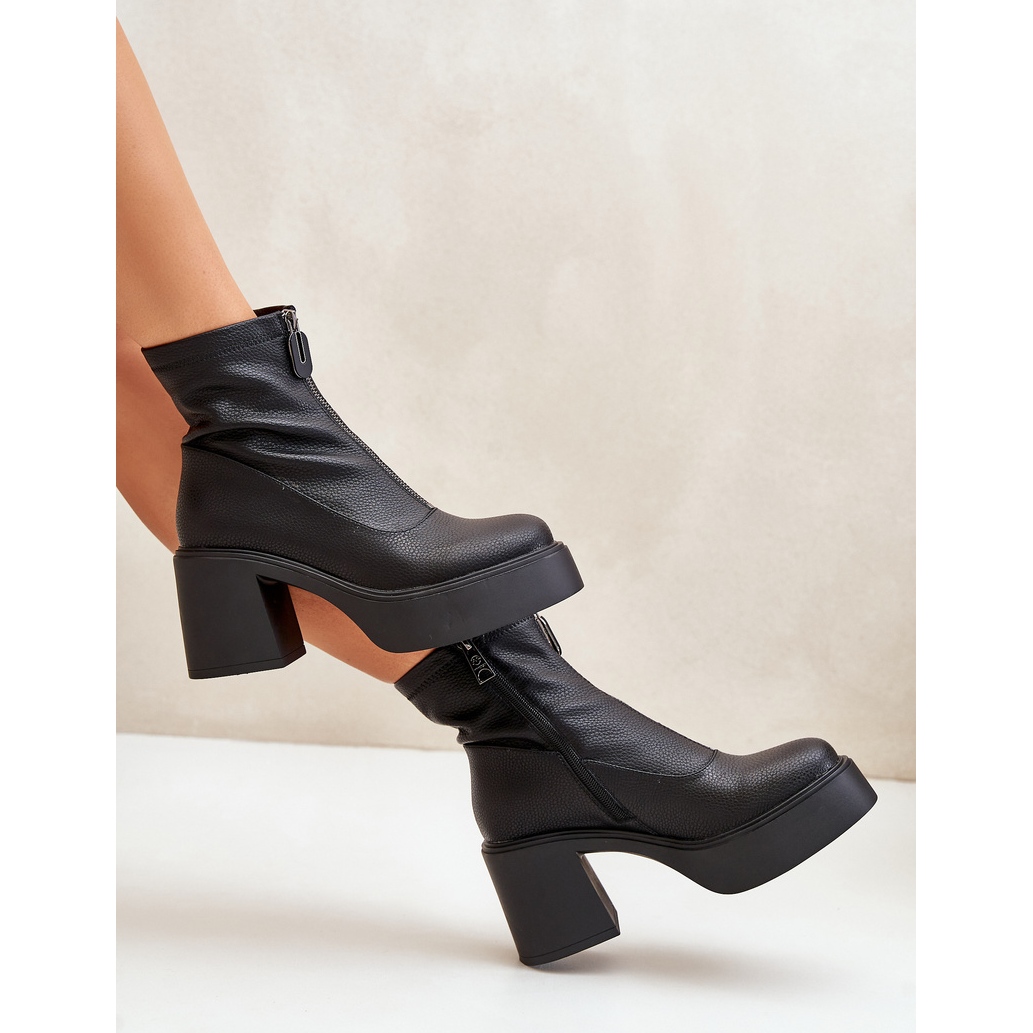 Vinceza Zateplené dámské kozačky na platformě a vysokém podpatku Černá Vinceza 66715