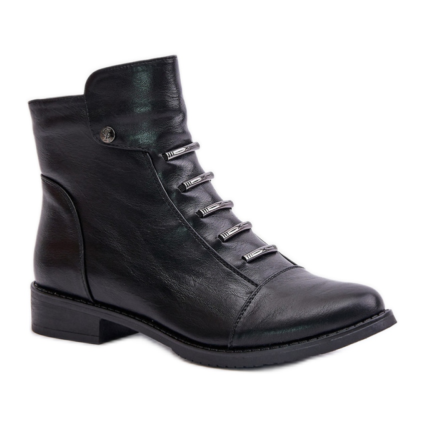 Jezzi Jezzi Zateplené dámské kozačky na plochém podpatku, černé černá