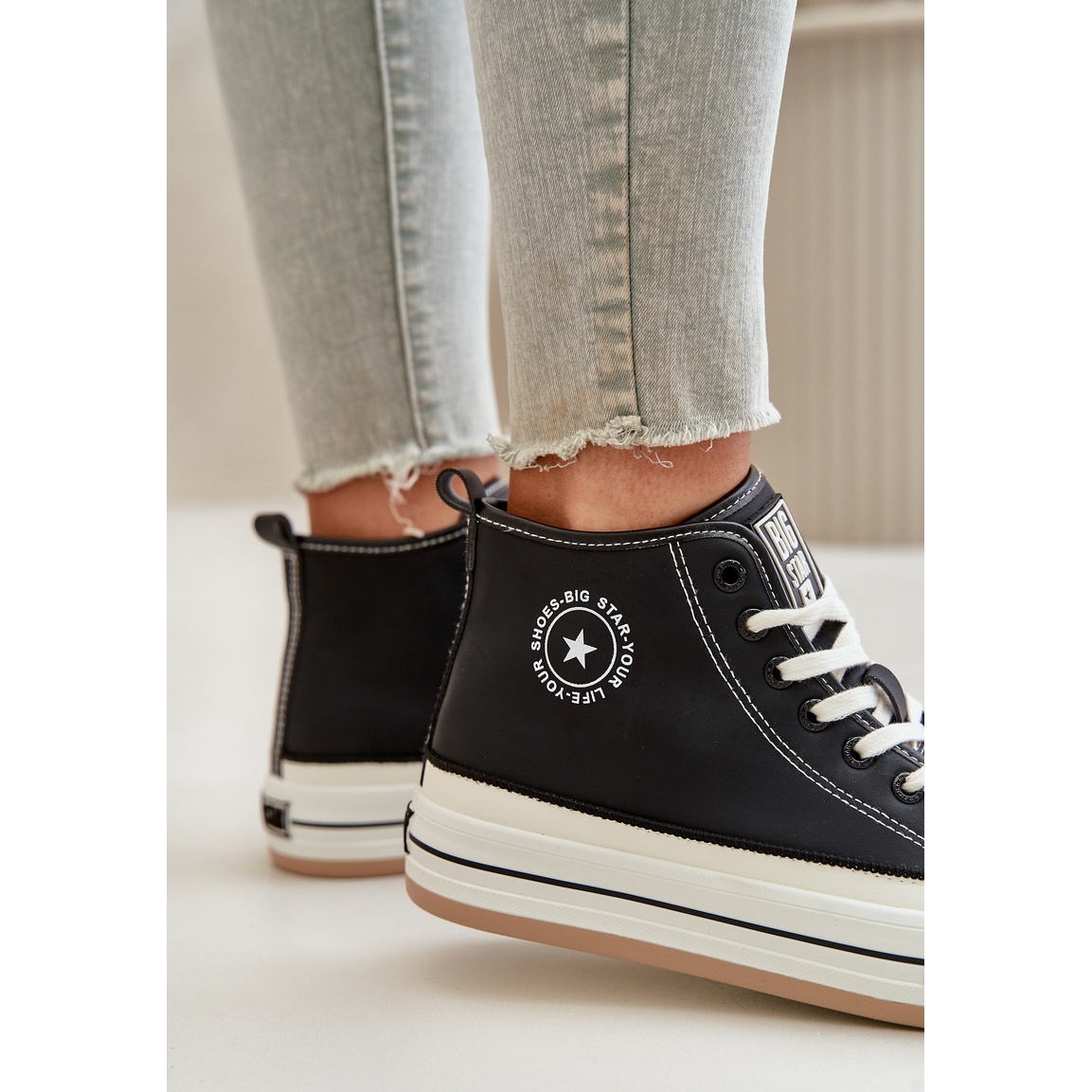 Izolované ženské tenisky na platformě EKO Big Star OO274062 EKO Platform In Black je perfektním řešením pro ženy, které hledají styl a pohodlí současně. Tyto módní tenisky, vyrobené z vysoce kvalitní ekologické kůže, kombinují funkčnost s elegantním vzhledem.