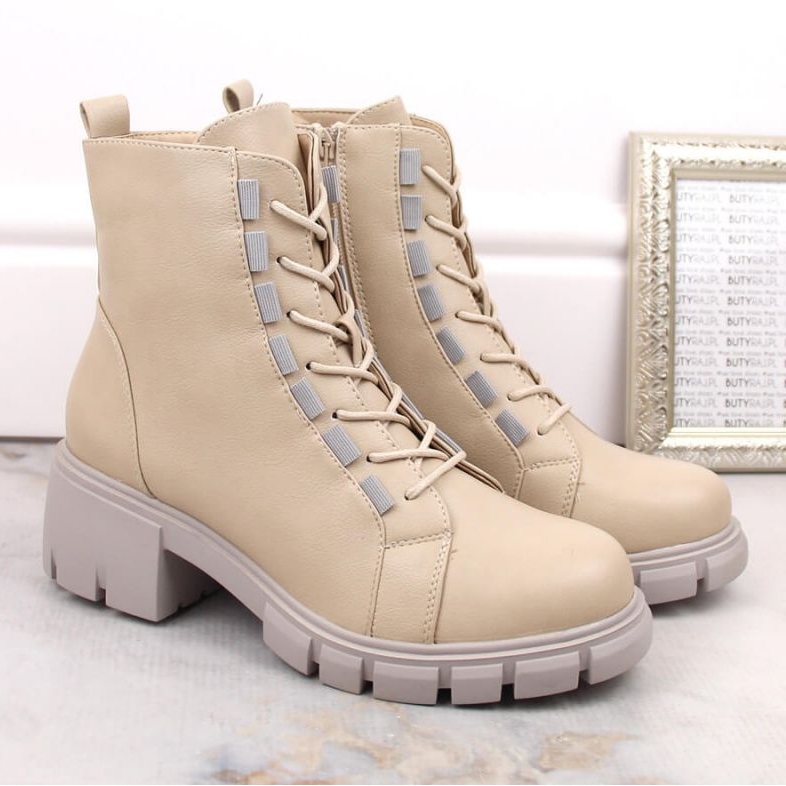 Dámské boty v Jez422B - béžová, izolovaná, pro tkaničky a jezdec