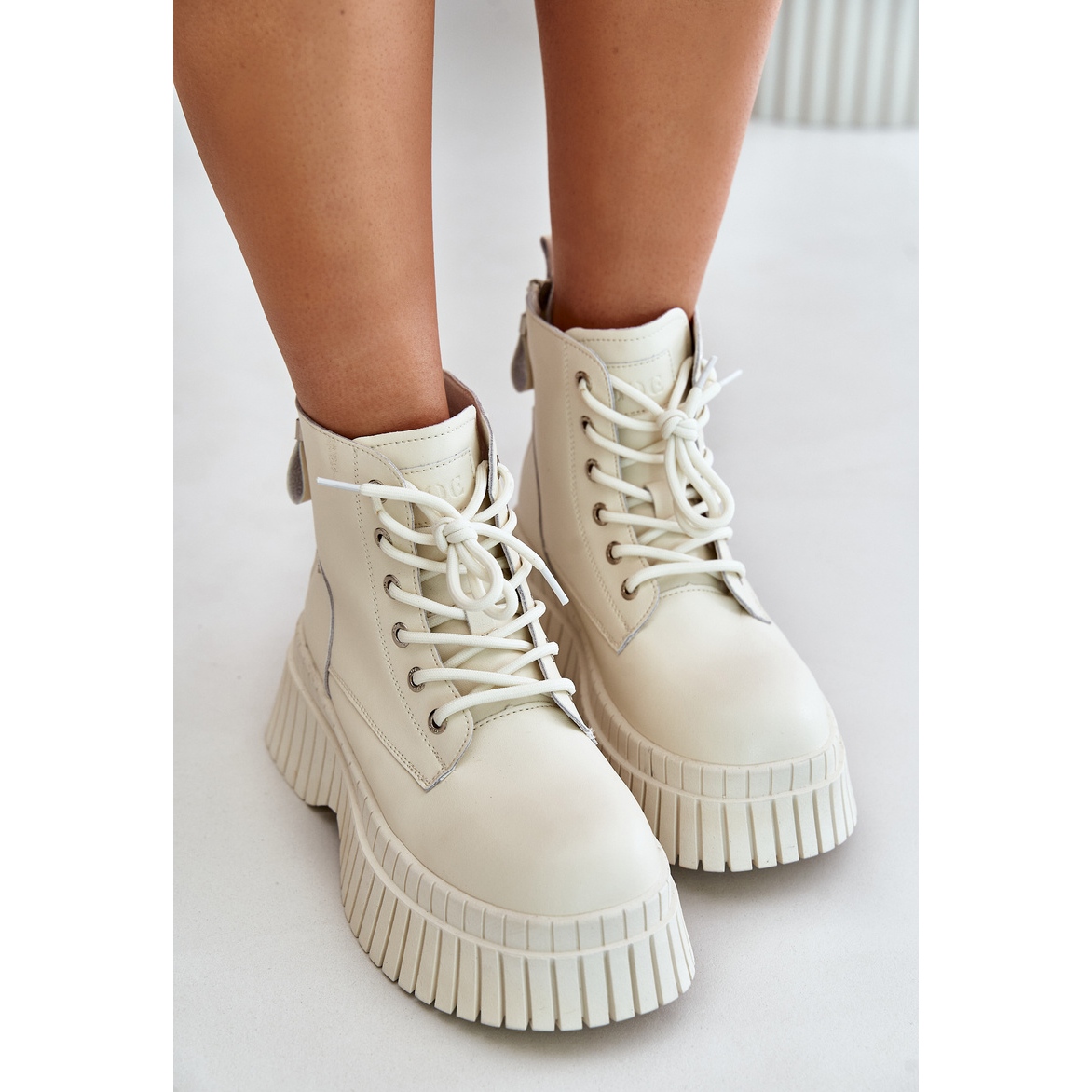 GOE Zateplené kožené kotníkové boty Trapper na masivní podrážce GOE OO2N4127 světle béžová béžový