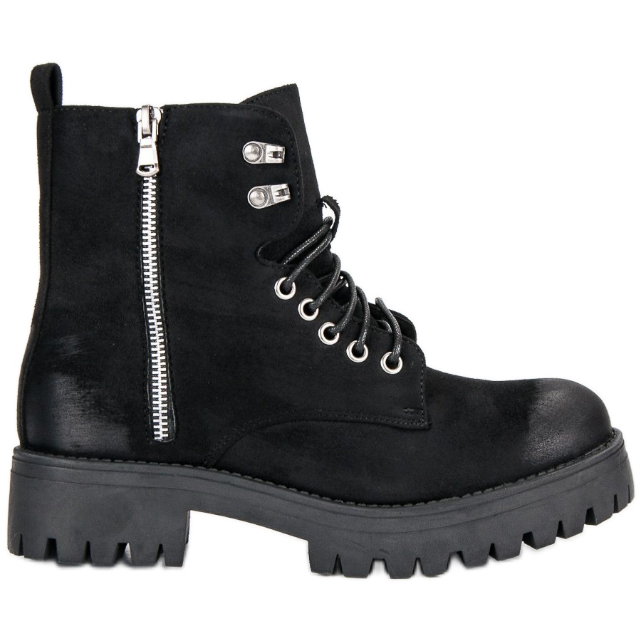 Black Corina šněrovací pracovnice jsou perfektní volbou pro ženy, které hledají stylovou a pohodlnou obuv na podzim a zimu. Vyrobeny z vysoce kvalitního ekologického semiše, spojují eleganci s každodenní funkčností. Tyto neformální boty se zapínají na dva ozdobné zipy a dodatečné šněrování, což zajišťuje nejen módní vzhled, ale také pohodlné padnutí na každou nohu.
