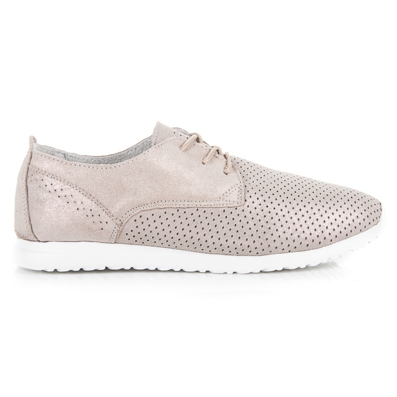Boty se vyznačují klasickou, kulatou špičkou a módním prolamováním, které jim dodává lehkost a eleganci. Zapínání na tkaničky umožňuje dokonalé přizpůsobení noze a měkká vestavěná pata zaručuje dodatečnou podporu a pohodlí. Nízká úroveň podpatku (3 cm) dělá boty stabilní, což z nich dělá ideální volbu pro každodenní nošení i pro různé typy akcí.