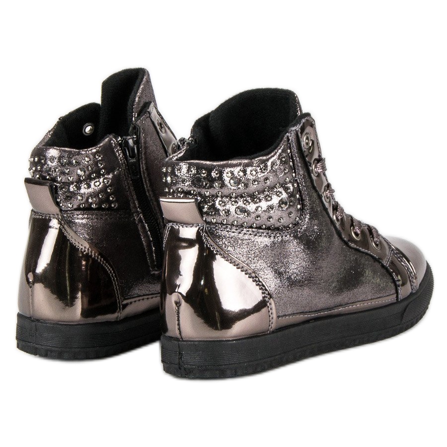 Vysoký svršek zdobený drobnými syntetickými krystaly upoutá pozornost a díky originální kombinaci hnědé a béžové se tyto tenisky skvěle hodí k nejrůznějším outfitům. Díky reflexnímu materiálu tyto boty nejen skvěle vypadají, ale také zaručují bezpečnost při večerních procházkách.