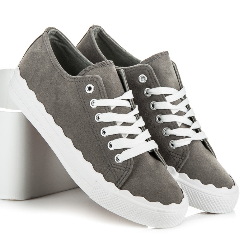 Výška podpatku 3 cm jim dodává jemné zvýšení při zachování stability a komfortu nošení. Šedá barva je mimořádně univerzální – hodí se k ležérním i elegantnějším stylům.