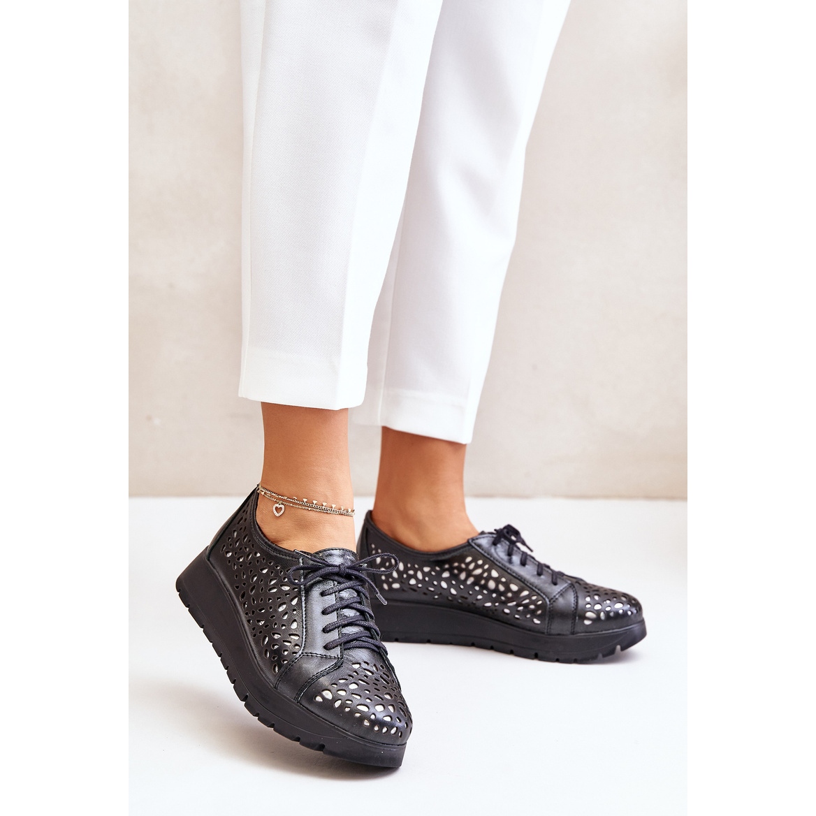 Podrobnosti: Zazoo 2973 kožené boty na platformě s prolamovaným vzorem, černá černý