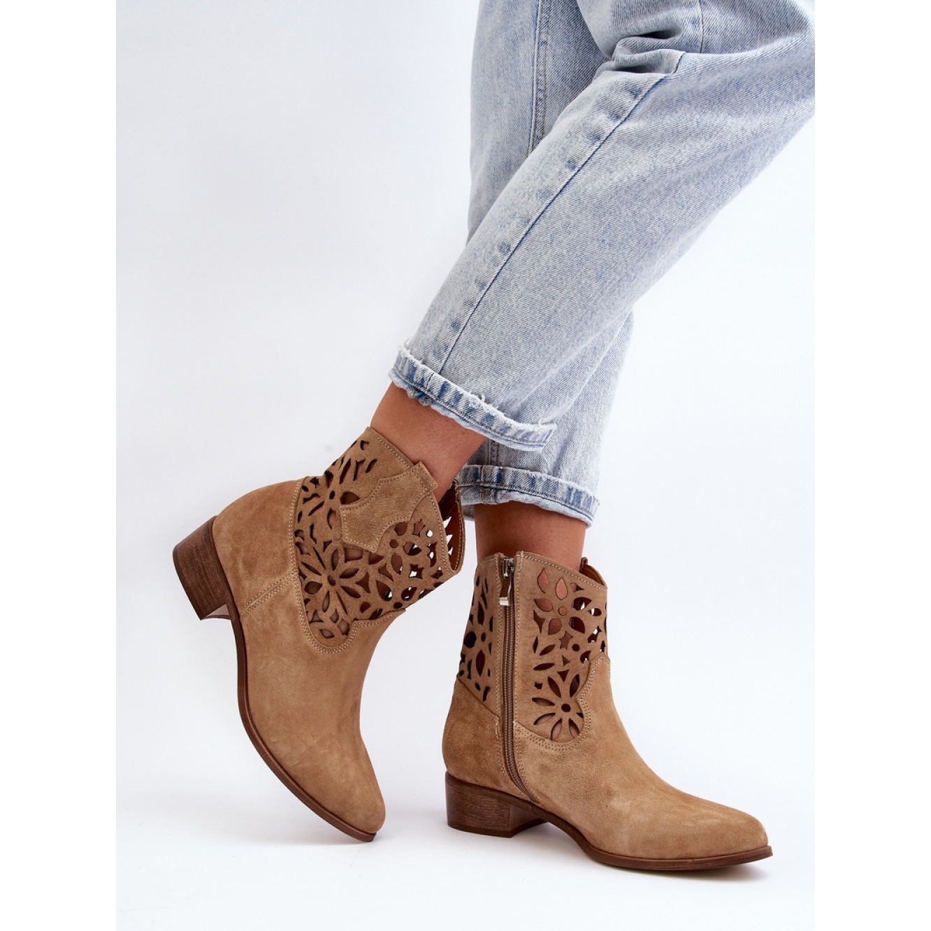 Zazoo Zazoo 3404 Béžové prolamované semišové kotníkové boty béžový