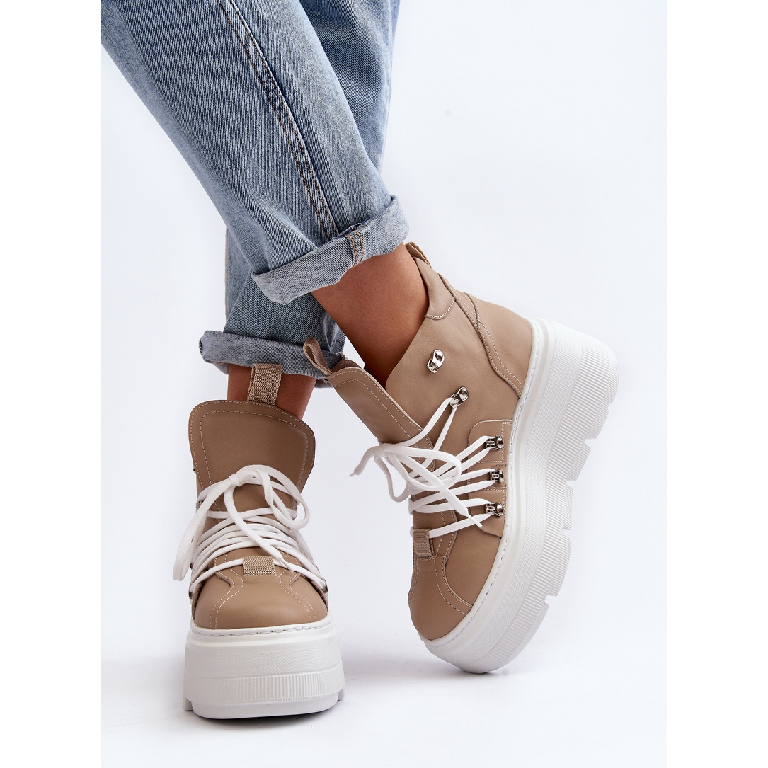 Zazoo Zazoo 3416 kožené dámské sportovní boty, béžová béžový