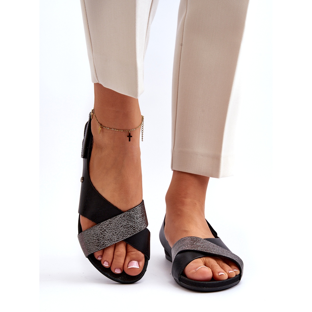Kožené sandály Zazoo 40141 vypadají mimořádně elegantně díky svému klasickému designu obohacenému o moderní prvky. Černá barva je vždy módní a dodatečný akcent v podobě stříbrného emblému s logem značky dodává modelu charakter. Otevřené špičky a paty vytvářejí perfektní kompozici pro jakýkoli letní styling – od ležérního po elegantnější.