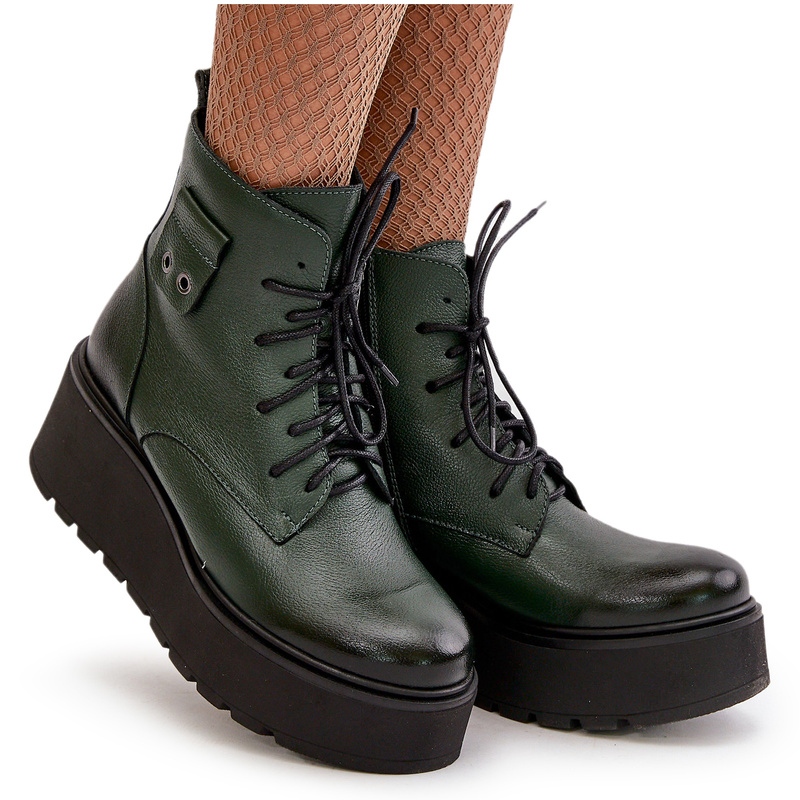 Podrobnosti: Zazoo 60499 Dámské boty na platformě a klínu zateplené přírodní kůží tmavě zelená