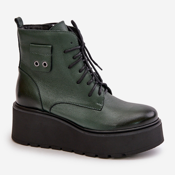 Zazoo Zazoo 60499 Dámské boty na platformě a klínu zateplené přírodní kůží tmavě zelená