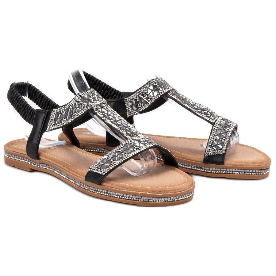 Bello Star Zdobené černé sandály černý