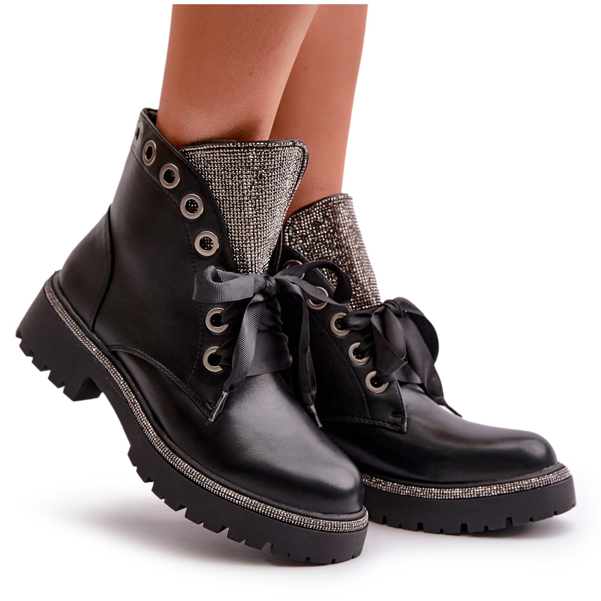 - Modelka: Zdobené dámské teplé kotníkové boty z eko kůže