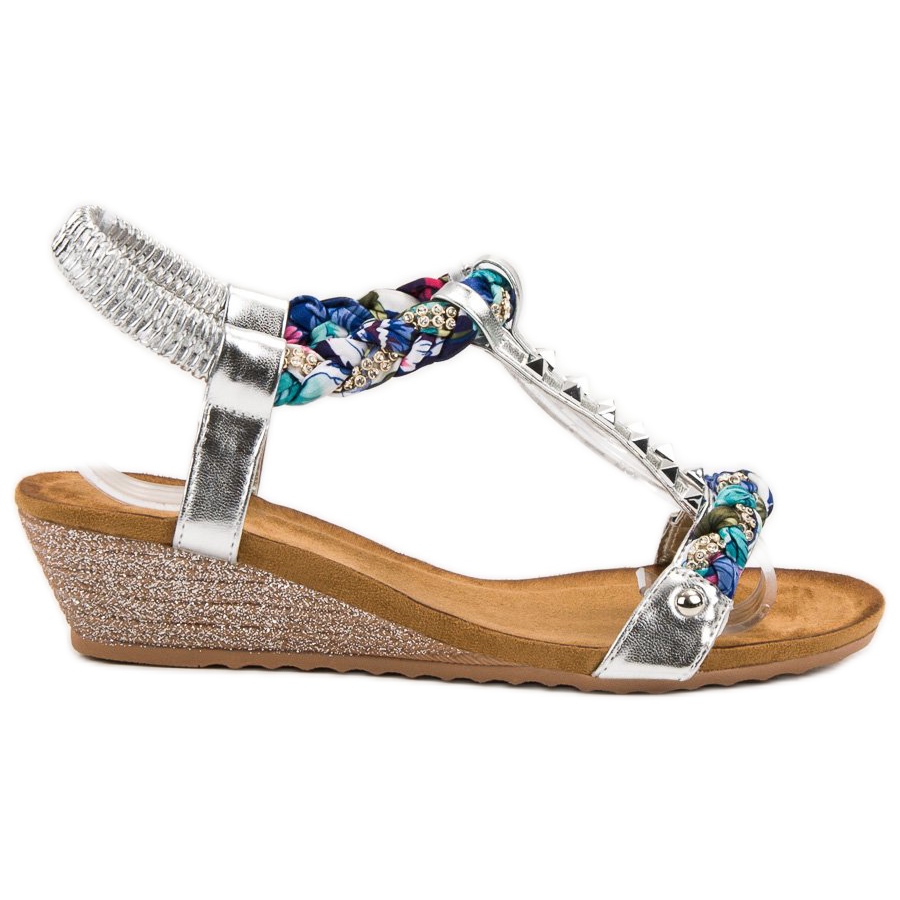 SHELOVET SHELOVET Zdobené klínové sandály šedá vícebarevný