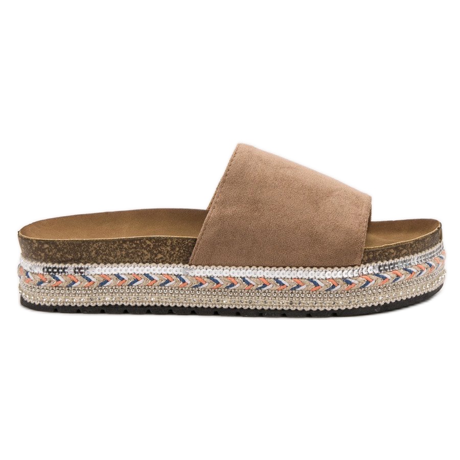 Jumex Jumex Zdobené pantofle na platformě hnědý
