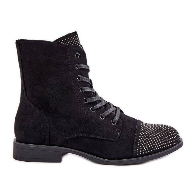 Inna marka Zdobené ploché kozačky, eko semiš, teplé, černé Ellieo černá