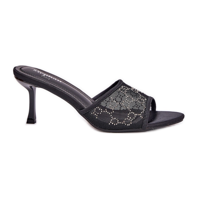 Zdobené žabky na vysoké patě černý