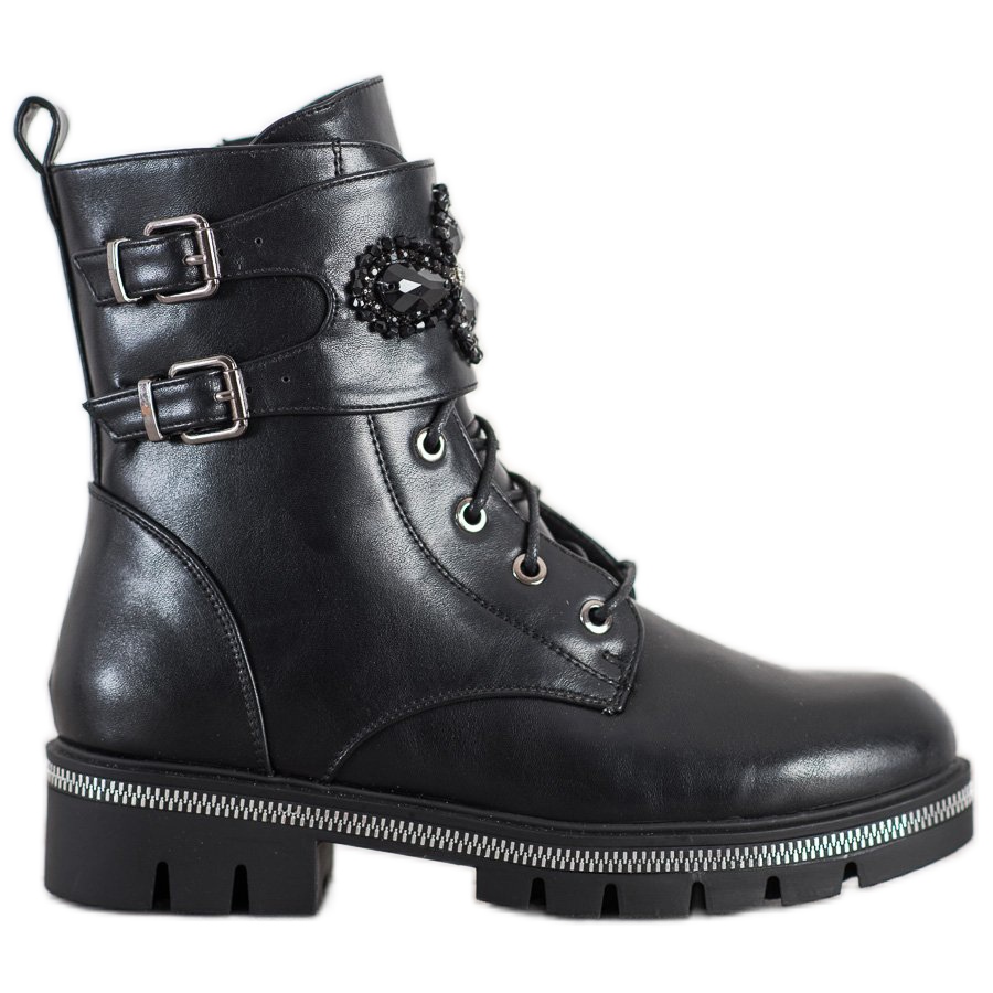 Vyrobeno z vysoce kvalitní ekologické kůže, pracovníci zajišťují odolnost a každodenní pohodlí. Vnitřní zateplení udrží vaše nohy v teple i v chladnějších dnech. Kulatá špička, vestavěný podpatek a měkká podšívka činí tyto boty extrémně pohodlnými a jejich elegantní detaily, jako je ozdobná přezka nebo kamínky, jim dodávají charakter.