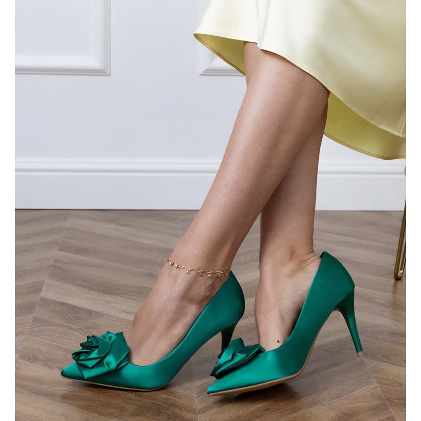 Podrobnosti: Zelená saténová čerpadla s květem zelený