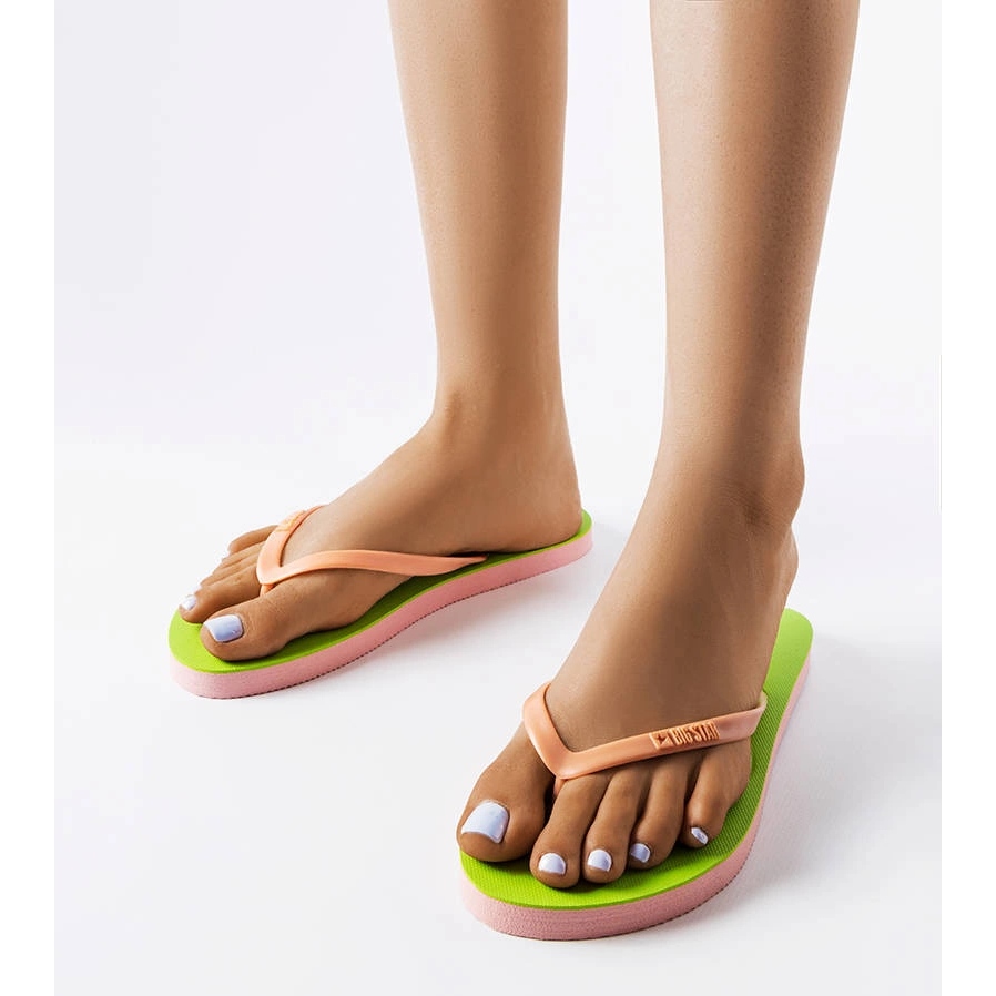 Green and Pink Big Star FF274A330 Flip-Flops-Light, Léto a pohodlné. Stylový skluz -Dámské žabky z letní sbírky a kombinující intenzivní zelenou svršku s energetickou růžovou podešvou barvou. Ideální pro pláž, do města a pro rychlé výstupy v horkých dnech.