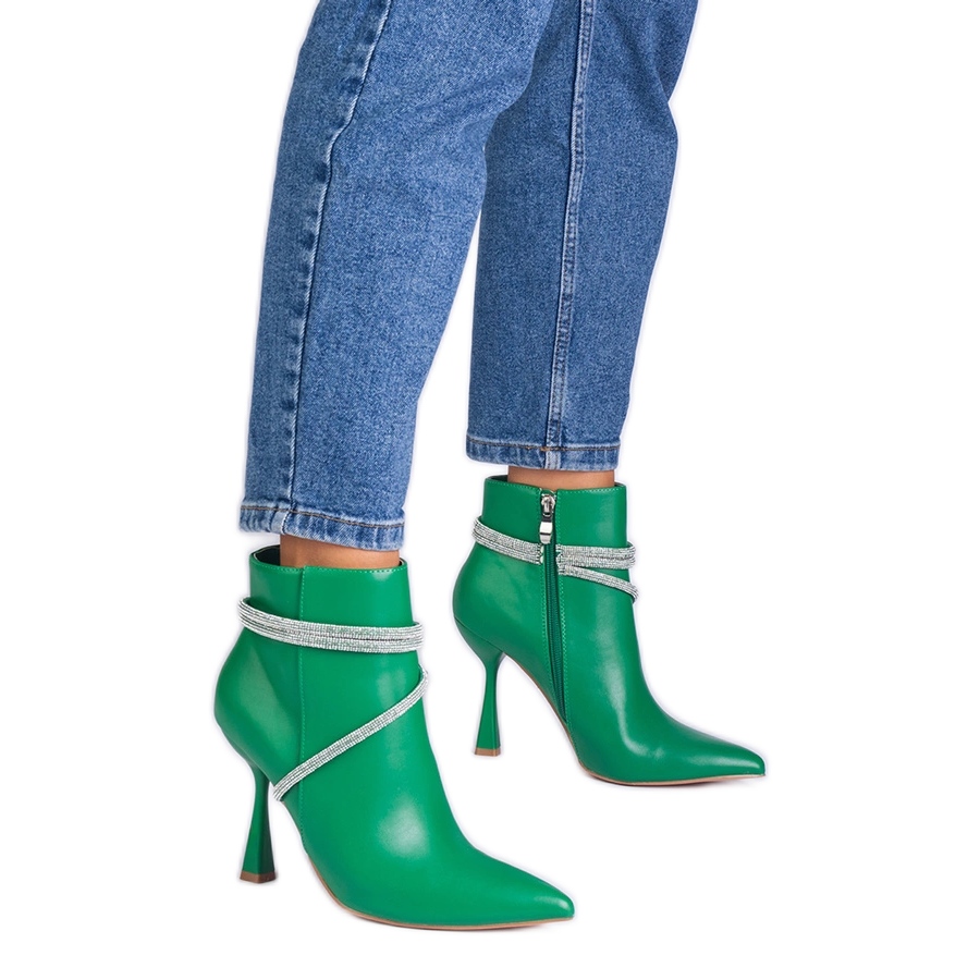 Zelené boty na vysoké patě zdobené zirkony zelený