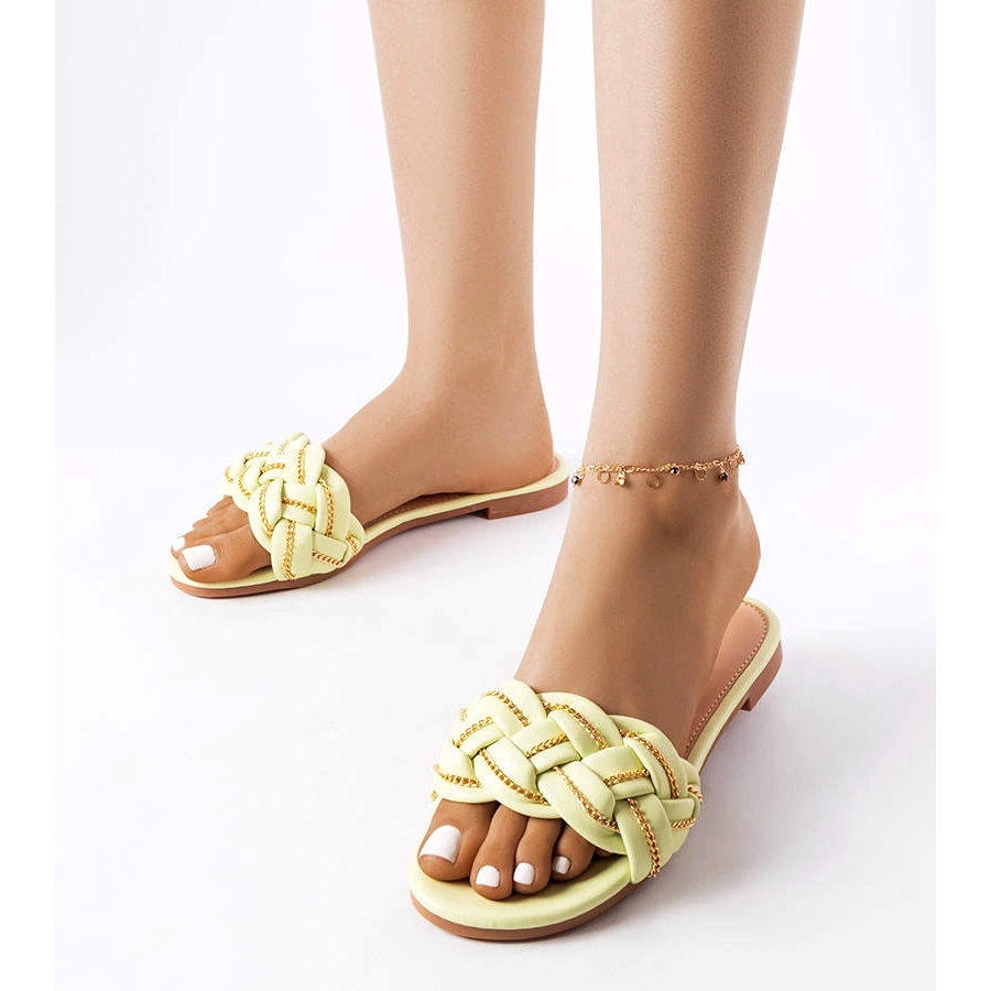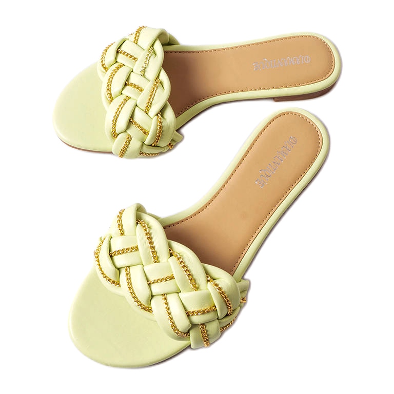 Correra - zelené, elegantní žabky, které musíte mít letos v létě. Jejich charakteristický, pletený svršek s jemným řetězcem dává stylingu módní, ženský guláš a univerzální zelené se perfektně mísí s letními šaty, lněnými sadami nebo džínovým šortkám.