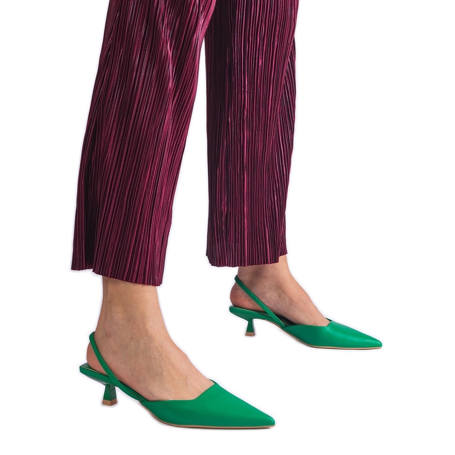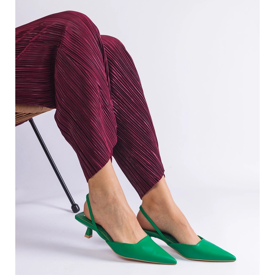 Zelená barva čerpadel se perfektně zapadá do letních trendů a béžová plastová podešví přidává jemný kontrast. Špičující nosič zdůrazňuje eleganci bot, což z nich činí perfektní doplněk k každodenním i večerním stylizacím.