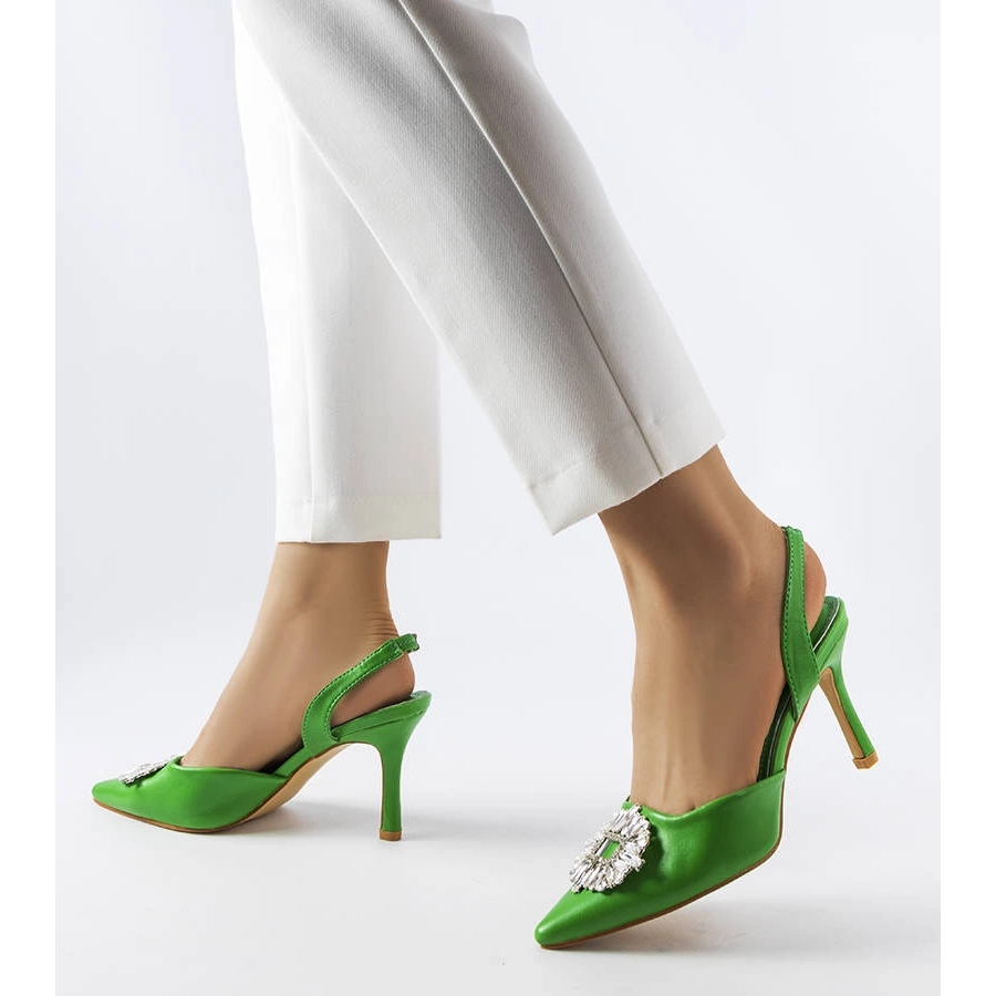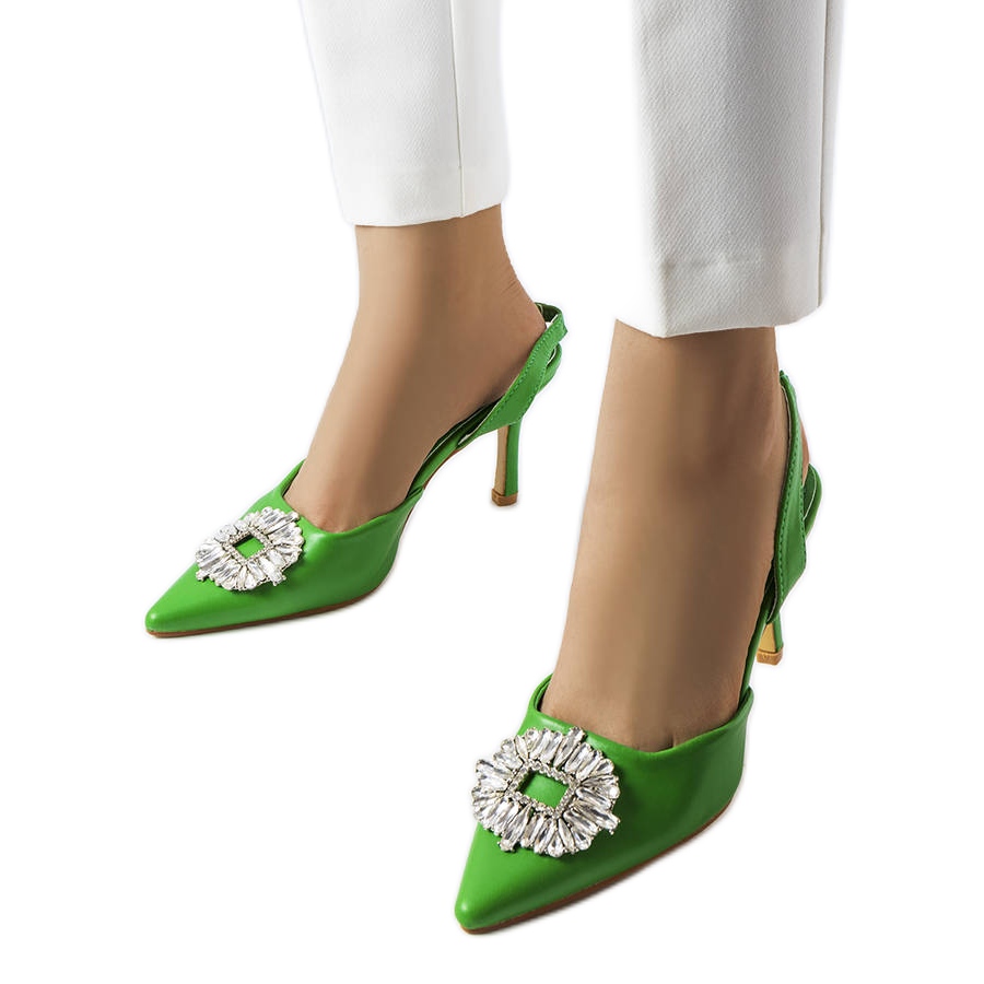 Zelené vysoké podpatky s moïse zirkon - elegance v intenzivním vydání. Klasický, špičatý nos a štíhlý vysoký podpatk zdůrazňuje postavu a jemné drahokamy na horním přidání lesku - ideální pro večerní výlety, svatby a zvláštní příležitosti v letním sezónním prostředí.