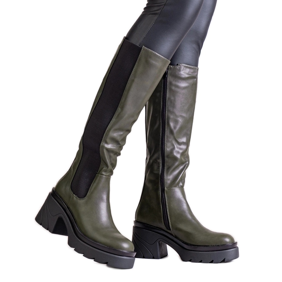Inna marka Zelené kozačky na silnějším podpatku značky Charla zelená