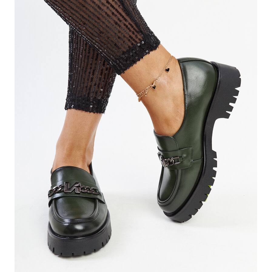 Vinceza zelená kožená mochéry jsou skvělou volbou pro ženy, které si cení elegance v kombinaci s pohodlím. Tyto mokasíny, vyrobené z vysoce kvalitní přírodní kůže, se těší nejen svou barvou, ale také pečlivým povrchem a módním detailem ve formě řetězce, což jim dává jedinečný charakter.