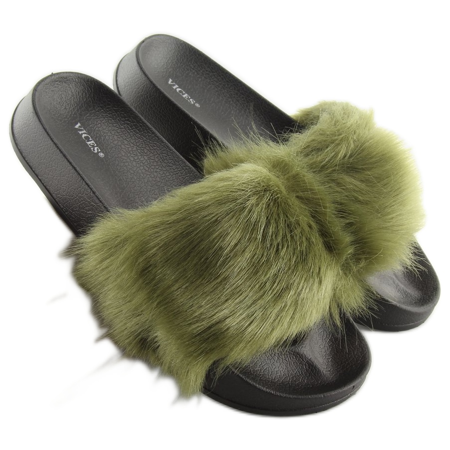 Podrobnosti: Zelené kožešinové pantofle S36 zelené zelený