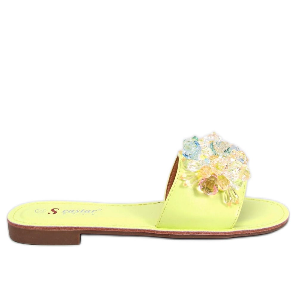 Podrobnosti: Zelené pantofle s barevnými kamínky zelený