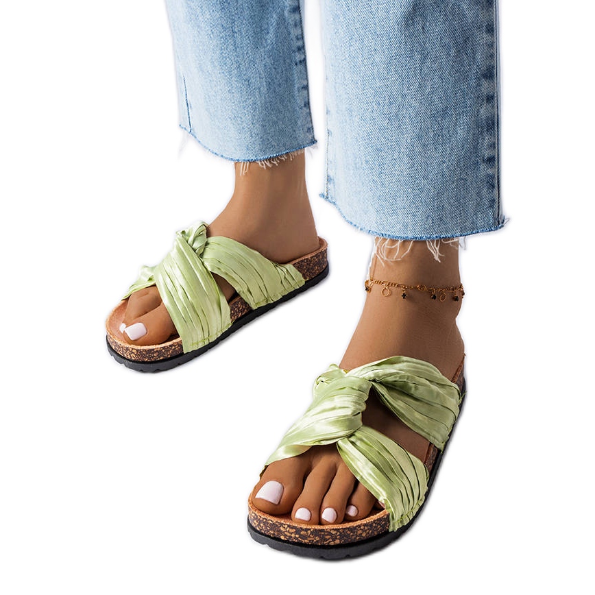 Podrobnosti: Zelené pantofle zdobené látkou Fresne zelený