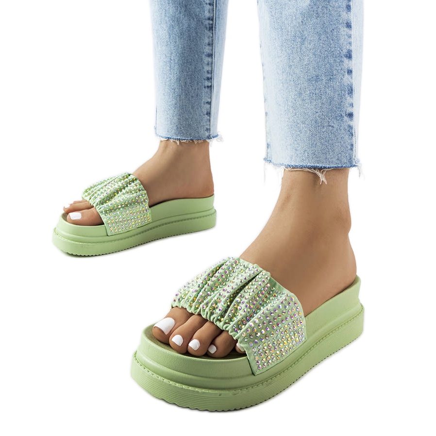Zelené žabky se zirkony fanů - letní elegance a pohodlí