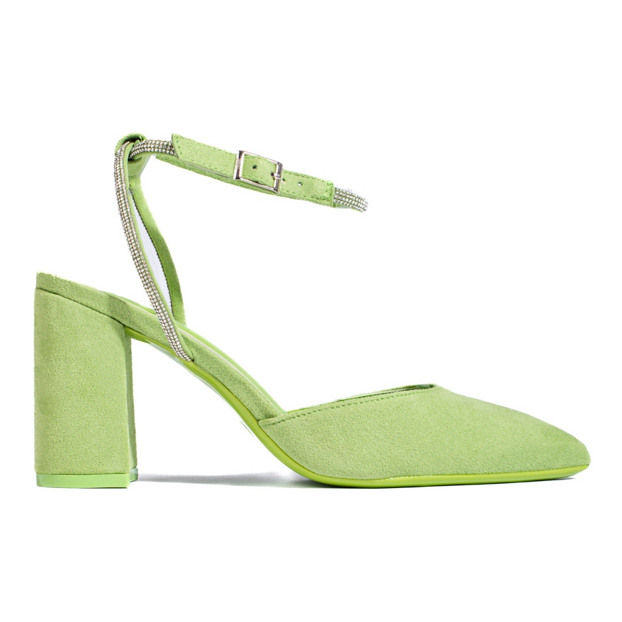 SHELOVET Zelené semišové lodičky na otevřeném podpatku od Shelovet zelená