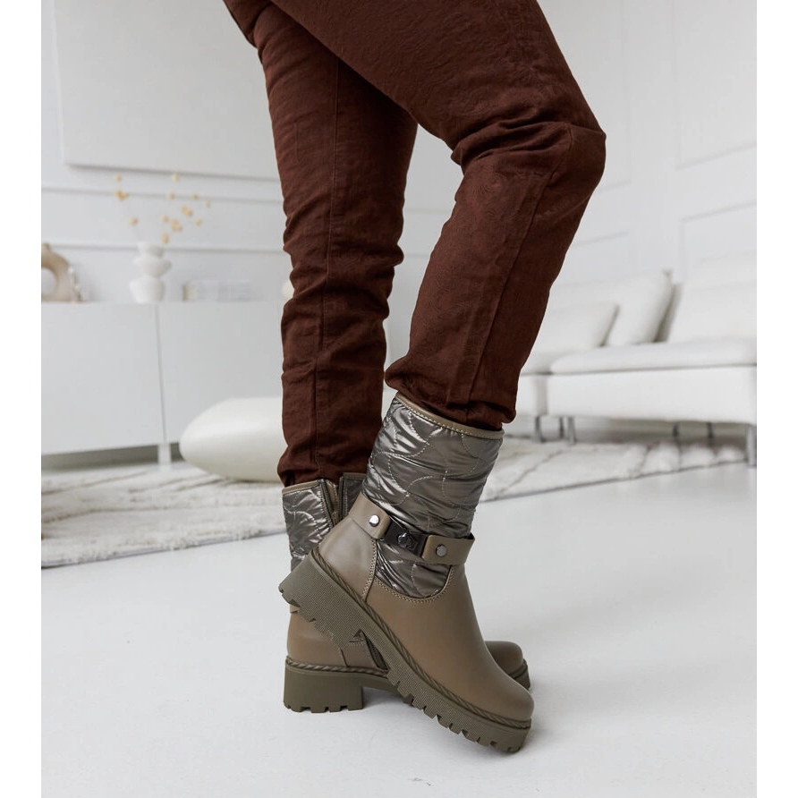 Elegantní Lido Boots in Khaki Color je kombinací módního designu a praktičnosti. Izolovaný design účinně chrání před nízkými teplotami a kotník až do kotníku (vysoký 24,5 cm) činí model vhodný pro každodenní i elegantní stylizace. Dekorativní popruh přidává charakter, zatímco plochý pata s výškou 4,5 cm zaručuje pohodlí nošení po celý den. Zipník na boku usnadňuje oblékání a vzlétání.