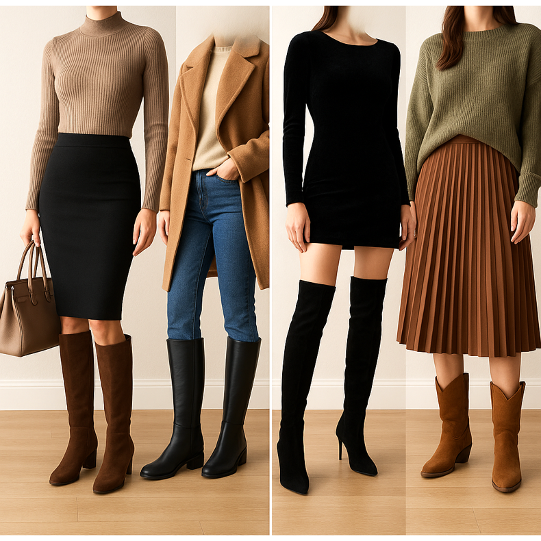 Boty jsou velmi univerzální obuv, kterou lze nosit mnoha způsoby. Pro práci: Vyberte si elegantní vysoké podpatky, kombinujte je s sukní tužkou a odpovídajícím svetrem. Každý den: Sázka na pohodlné modely na ploché podrážce, které vypadají skvěle s džíny a nadměrným kabátem. Na večer: Musketeers na špendlíku v kombinaci s mini šaty tvoří sexy vzhled. Víkend: Cowboy -styl boty odpovídají volným svetrům a plisovaným midi sukně.