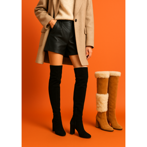 Boty s kožešinovou povrchovou úpravou jsou kvintesence zimního luxusu. V této sezoně návrháři nabízejí modely s přírodní nebo ekologickou kožešinou, která zdobí horní okraj horního nebo celého interiéru boty. Tento trend kombinuje eleganci s praktičností - srst nejen vypadá krásně, ale také poskytuje další teplo. Kozáky ve stylu après-ski jsou obzvláště módní, inspirované lyžařskými botami, které se dobře mísí s městskými stylizacemi.