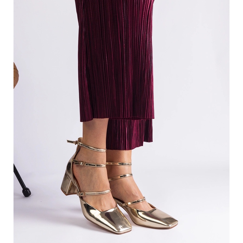 Zlatá čerpadla, která se na sloupku s přezky vaří, jsou volbou snů pro ženy, které chtějí do svého vzhledu přidat trochu lesku a elegance. Model G10059, vytvořený váženým výrobcem, kombinuje moderní design s vysokou kvalitou. Kovová zlatá barva zachycuje oko a perfektně zapadá do různých stylizací - od kanceláře do večera.