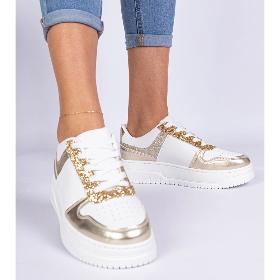 Inna marka Zlaté dámské tenisky na husté podrážce zdobené třpytky zlatý
