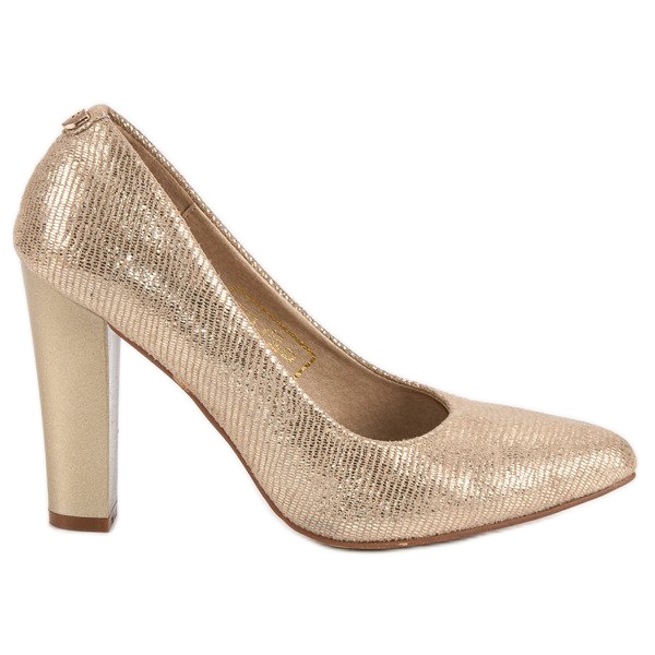 Vnitřek lodiček je vypodšívkovaný přírodní kůží, která zajišťuje pohodlí i při dlouhodobém nošení. Tyto zlaté lodičky od Filippo nesmí chybět v žádném dámském šatníku, perfektně se hodí v kombinaci s elegantními šaty, sukní nebo třeba džínami. Vyberte si tento model a dodejte svému vzhledu trochu lesku a elegance!